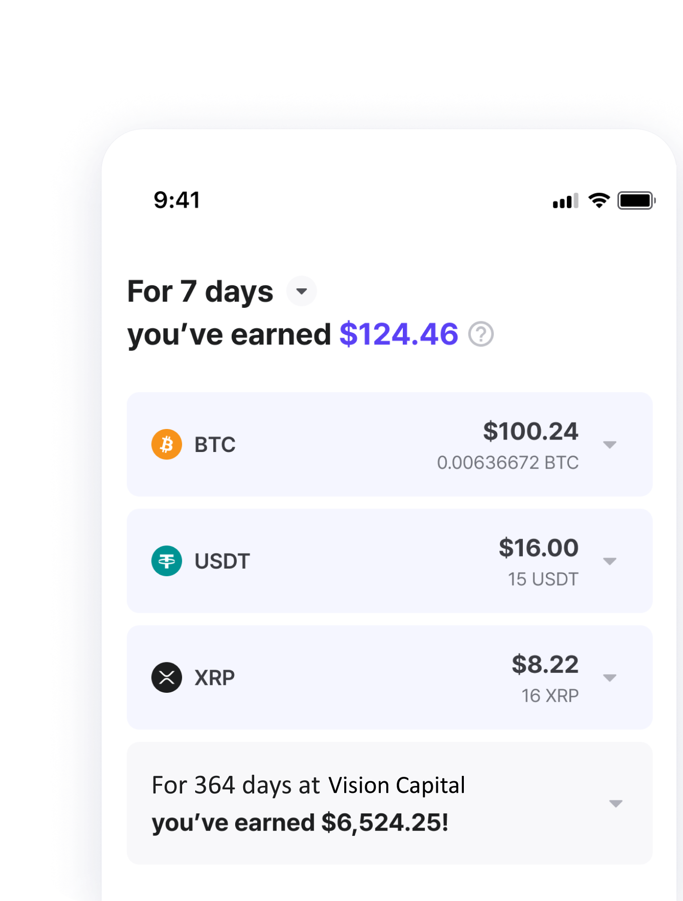 Earn every day just with your deposit and withdraw whenever you want. No lockup required.